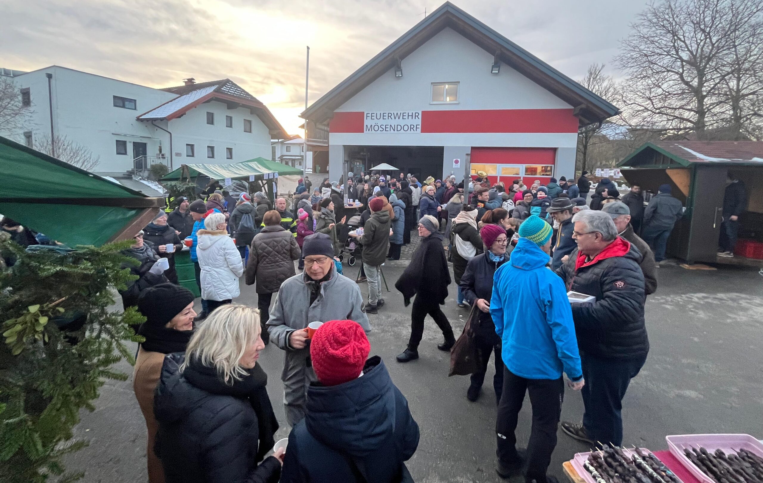 Bei winterlicher Kälte fand am 30. Dezember 2025 ab 15:00 Uhr der alljährliche Mösendorfer Aventmarkt statt und zog zahlreiche Besucher an. Neben wärmendem Glühwein, Glühmost, Kinderpunsch und Tee erwarteten die Gäste kulinarische Klassiker wie Raclettebrot, Pofesen, Bratwürstel und hausgemachte Kekse. Ein Blasmusikquartett sorgte für die weihnachtliche Atmosphäre. Bei einsetzender Dämmerung machte schließlich der Nikolaus Halt am Markt und verteilte gefüllte Sackerl an die Kinder.